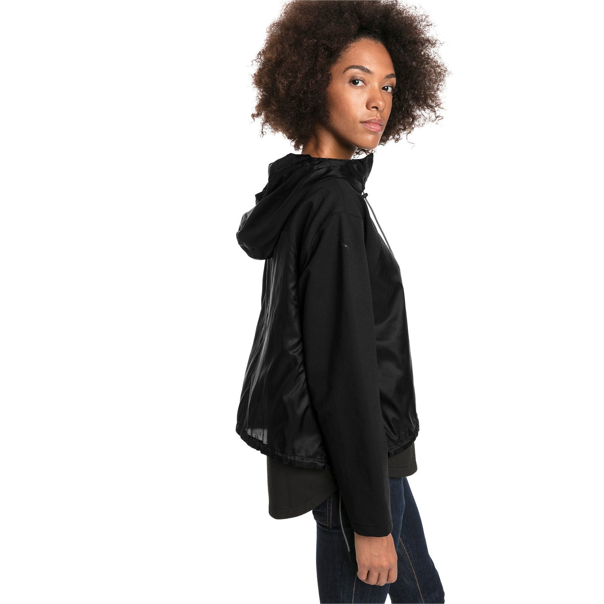 - Adjustable draw cord at bottom hem