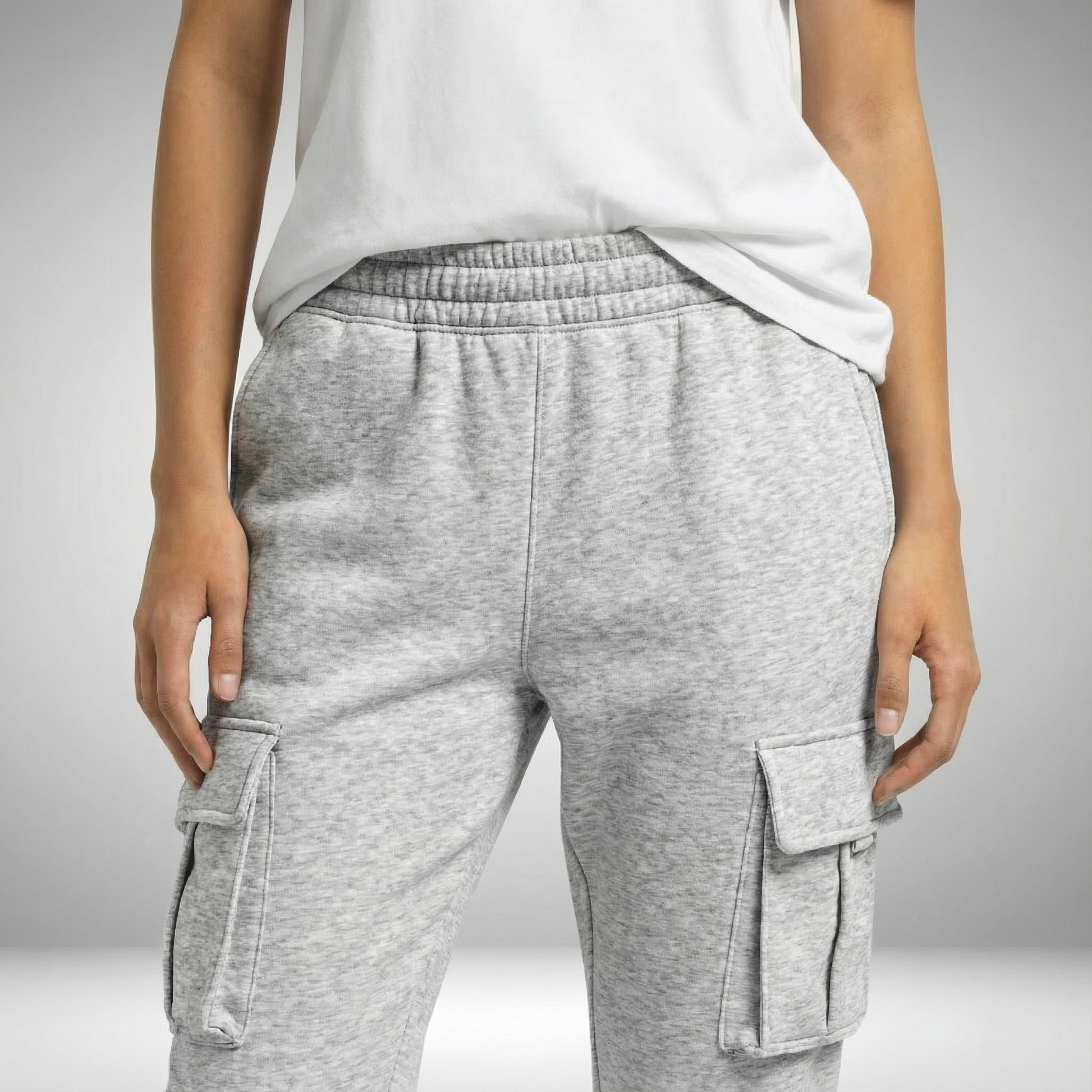 RELAXED FIT STRAIGHT LEG CARGO POCKET PANT, OPEN BOTTOM MID RISE, ELASTIATED WAIST BAND.ANKLE LENGTH