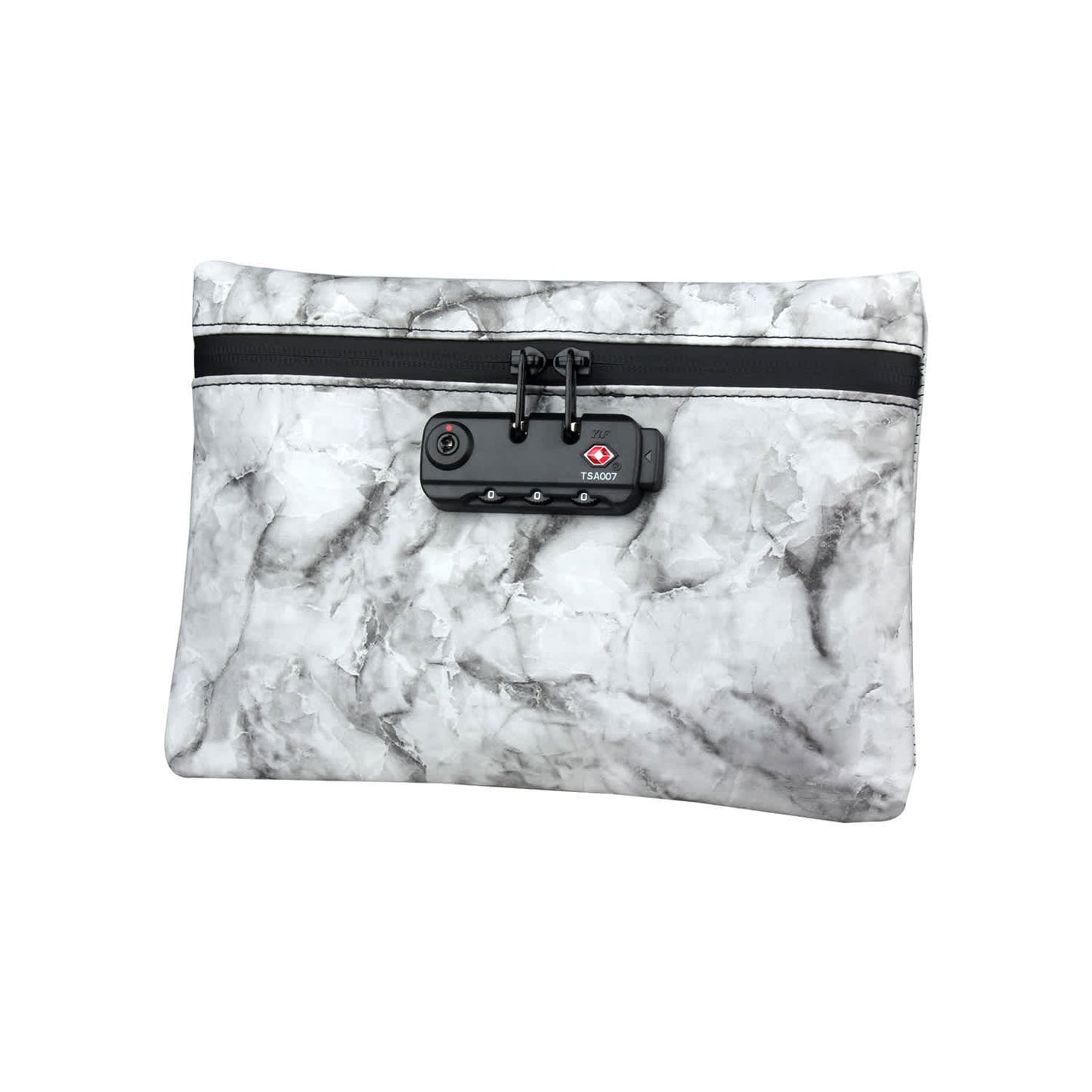 - Keep your essentials safe and organized with the Clarissa SealSafe Pouch. Featuring dual compartments, durable materials, and a secure combination lock, this pouch is perfect for protecting and preserving your valuables with style and ease!Features:Advanced Smell-Proof Technology: Crafted with durable PU leather and lined with premium activated carbon and non-woven fabric, this pouch ensures superior odor protection for all your essentials.Organized & Versatile: Two spacious compartments make it easy to separate and organize your items, offering maximum functionality in a compact design.Multi-Purpose Use: Designed to protect and preserve your coffee, teas, dried foods, herbs, and spices, the pouch is moisture-resistant and tear-proof for long-lasting performance.Secure Combination Lock: Keep your valuables safe with a built-in lock featuring a customizable code for added security and peace of mind.How to Reset Your Password:Set the dials to the original code: 0-0-0.Push the reset button firmly.Rotate the dials to set your desired combination.Press the side button to confirm your new password.Stay organized, odor-free, and secure with this highly functional smell-proof pouch!Material: PU LeatherColors Available: Ink Blue, Marble Red, Marble Green, Marble Purple, Marble BlackSize: 6.7 x 9.7 inches