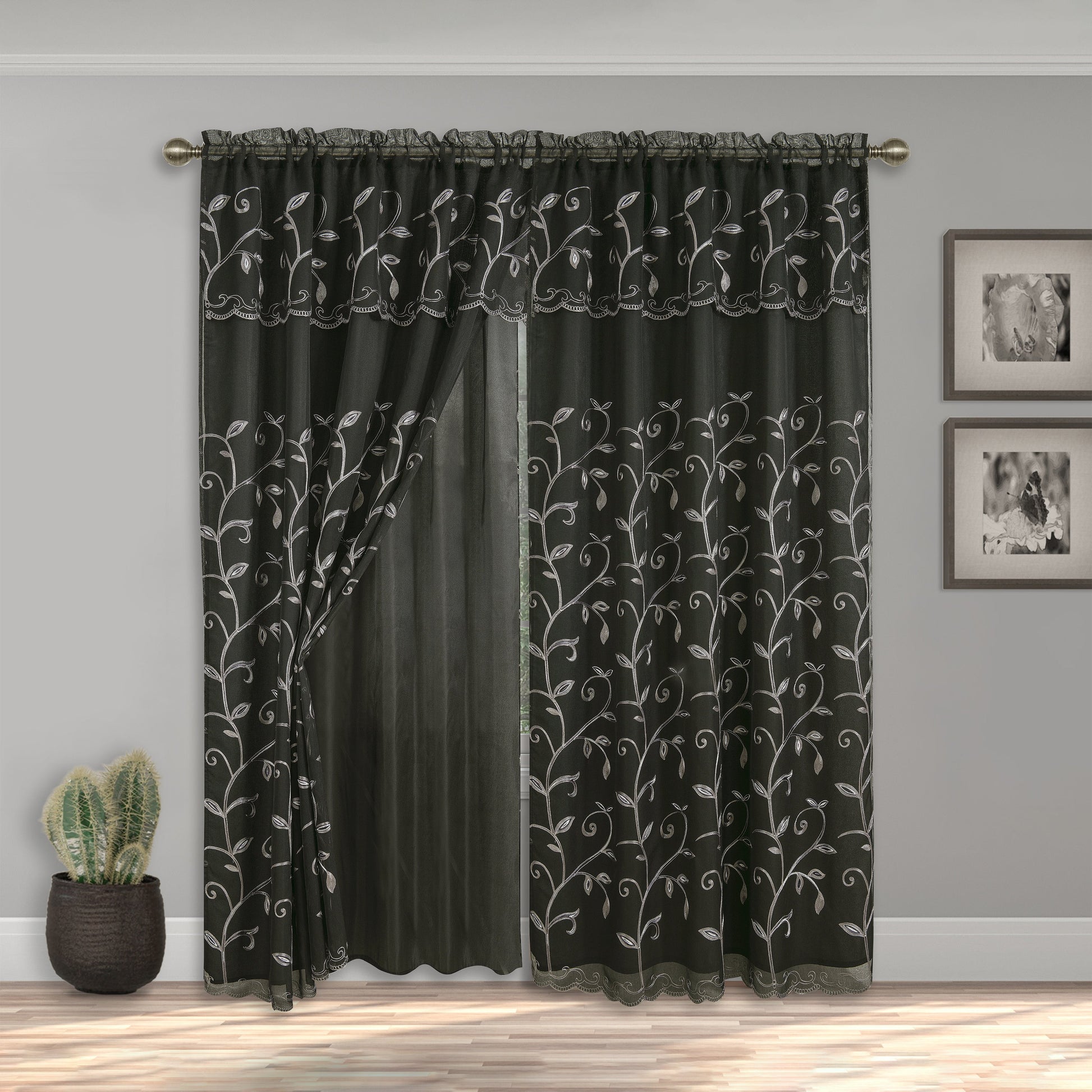 Elegant Comfort Set of 2 Lucia Curtain Panels - Attached Valance - 54" W x 84" L