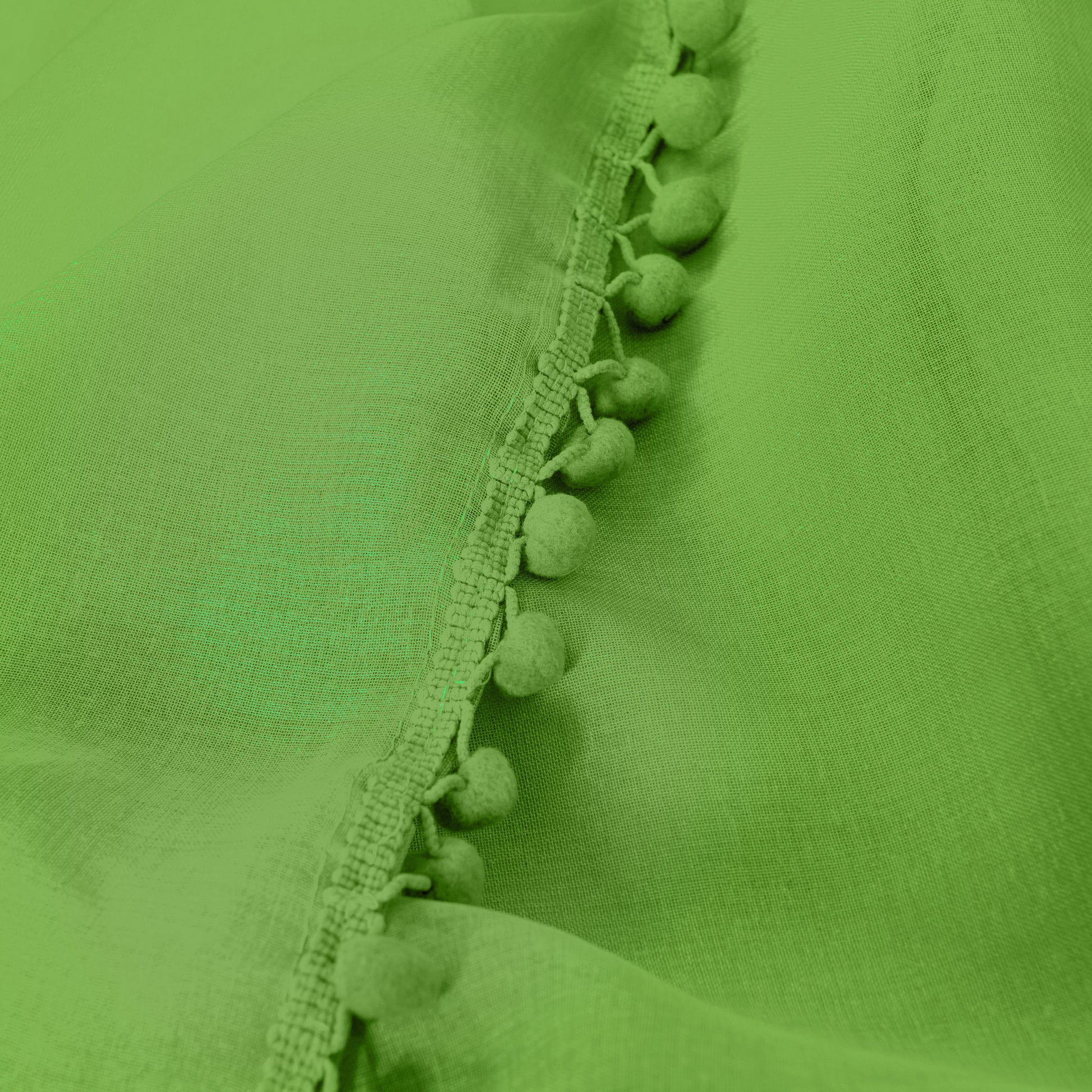 Allow natural light and add privacy in your room in style. Pom Poms are along the border of the vertical side of the sheer panels. Simple and elegant way to add a touch of color in any room. Made from strong microfiber yarns that will last for years.