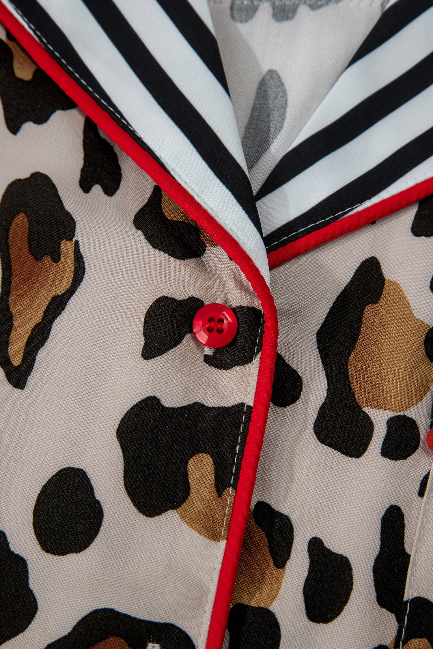 Step into Etta 2pcs Long Pajama PLUS Set for an effortless look that feels as good as it looks. Stylish leopard print pajamas with striped patchwork for a bold, chic look. Soft plus size pajama set offers relaxed comfort for day-to-night wear. Contrast piping adds a refined, elevated touch to the cozy silhouette. Long sleeves and pants provide full coverage and breathable warmth.
