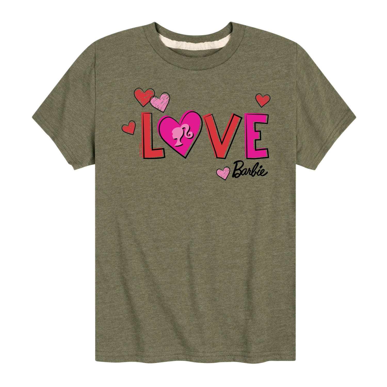 Barbie - Patterned Love - Toddler And Youth Short Sleeve Graphic T-Shirt - Step into the glamorous pink world of Barbie with our officially licensed graphic garments for the fashion-forward! Whether you dream of being a fashion designer, a mermaid princess, or a world-traveling explorer, our garments bring Barbie's world to life with vibrant colors and playful prints. Crafted with quality materials and attention to detail, each piece ensures comfort and durability for all-day play. Express your unique sense of style and imagination with our exclusive Barbie graphic apparel!