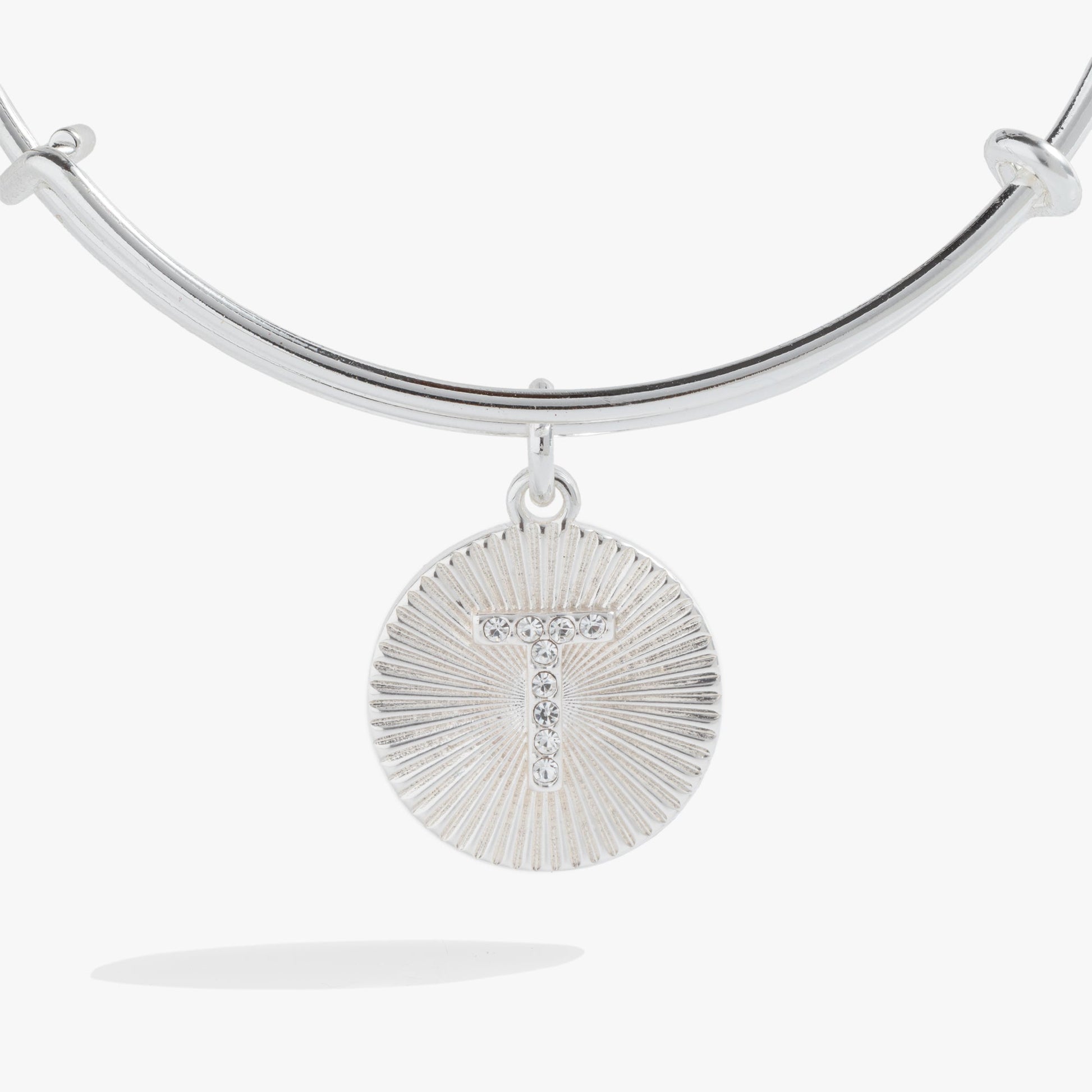 Carry a piece of your heart wherever you go with the Pavé Starburst Texture Initial Bangle Bracelet. Perfect for adding a touch of individuality to any outfit, initial charms are versatile and trending, with a starburst textured circle charm and pavé crystal initial letter at the center.