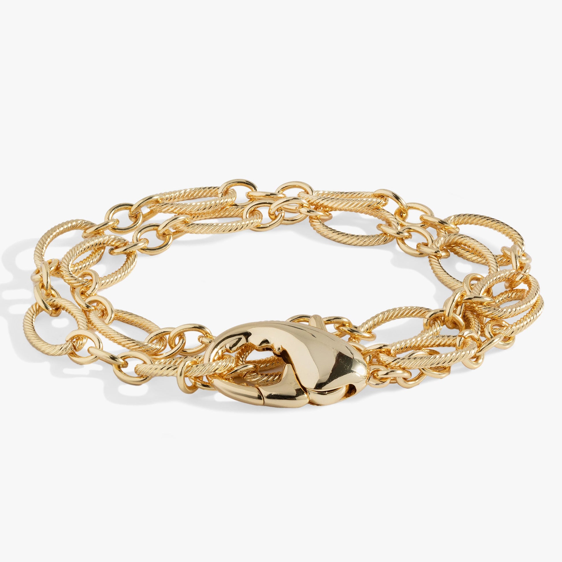Channel big fashion energy with this #mobwifeaesthetic Lobster Claw Convertible Wrap Bracelet. This piece can be worn as either a statement necklace or wrapped around your wrist as a layered chunky chain. Often representing the seizing of life's opportunities, the lobster claw is worn to symbolize prosperity. This bracelet features a twisted rope textured chain and a large lobster claw clasp designed to be worn front and center.