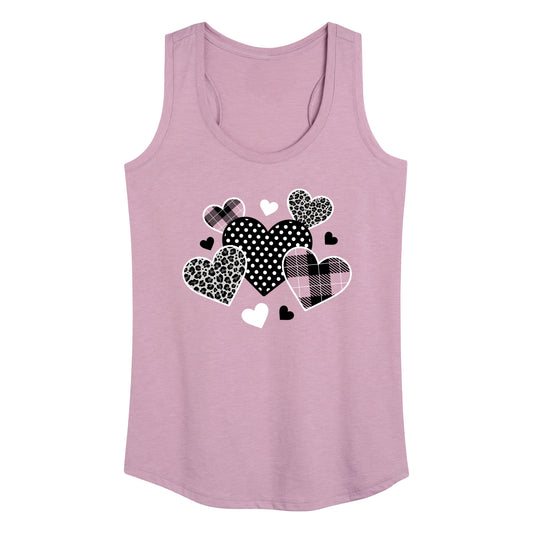 Instant Message - Mixed Patterned Hearts - Women's Racerback Tank Top