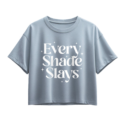 Instant Message - Every Shade Slays - Juniors Cropped Graphic T-Shirt