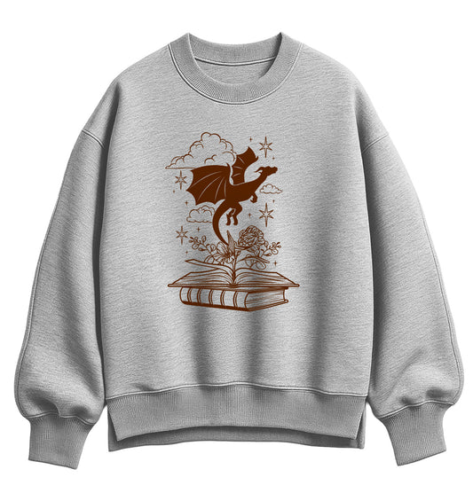 Instant Message - Dragon Flying Out Of Book - Women's Oversized Fleece Crew Sweatshirt