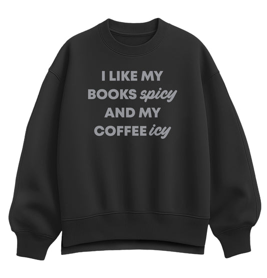 Instant Message - Books Spicy Coffee Icy - Women's Oversized Fleece Crew Sweatshirt