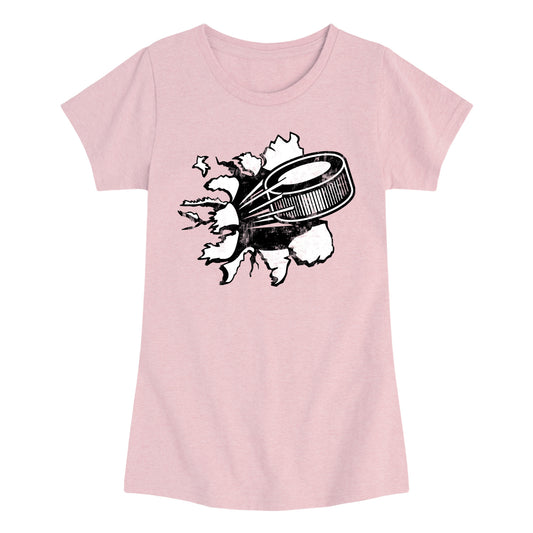 Instant Message - Hockey Puck Shirt Tear - Youth Girls Fitted Short Sleeve T-Shirt
