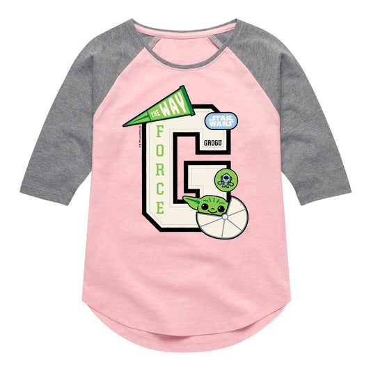 The Mandalorian - Grogu Letterman - Youth Girls Shirt Tail Raglan T-Shirt