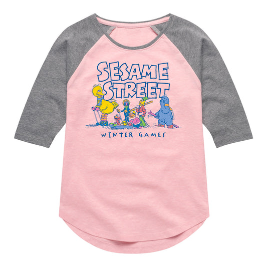 Sesame Street - Winter Games - Youth Girls Shirt Tail Raglan T-Shirt