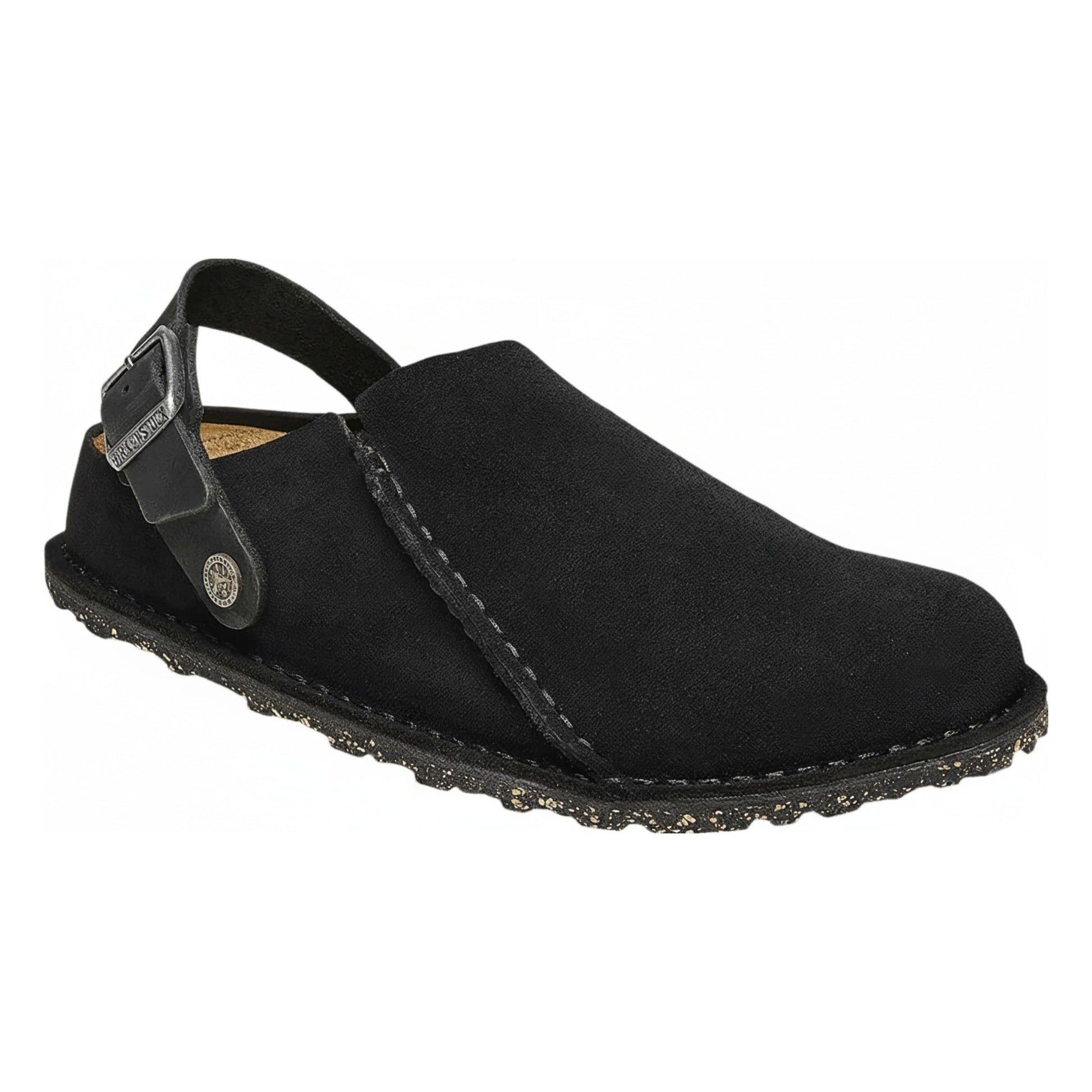 Birkenstock's Lutry model delivers timeless comfort through premium suede leather construction and the brand's signature anatomical footbed. The unisex design accommodates various foot shapes with adjustable straps for a customized fit. Black suede offers versatile styling across casual and smart-casual wardrobes. The contoured cork and latex footbed provides arch support and shock absorption for all-day wear. Durable construction ensures this classic silhouette remains a reliable staple for years to come.