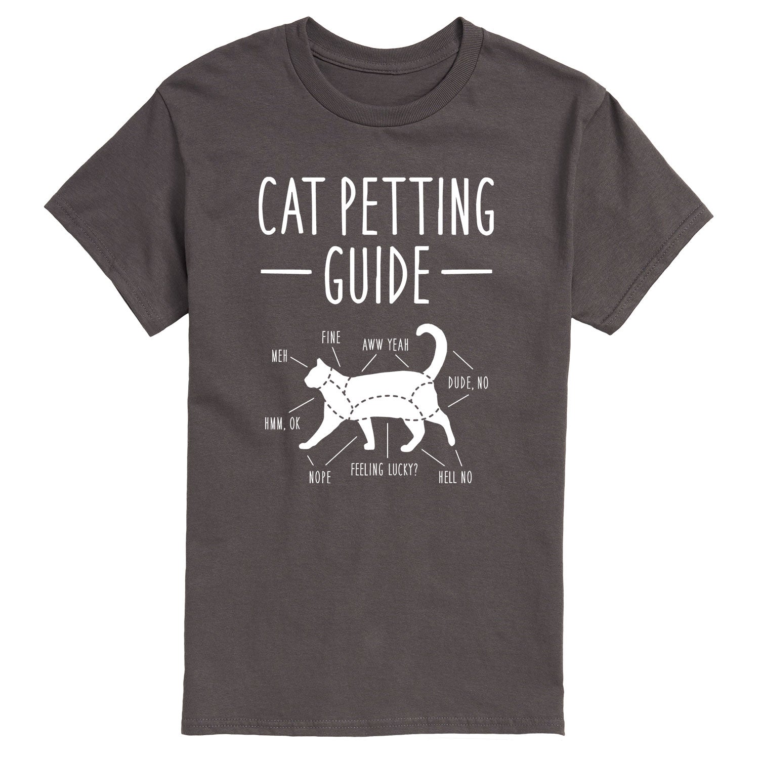 Instant Message - Cat Petting Guide - Men's Short Sleeve Graphic T-shirt - Instant Message is an online specialty fashion retailer for everything from funny to inspiring printed apparel. We offer a range of garments from long sleeve and relaxed fit t-shirts, to lightweight french-terry long sleeve shirts, hoodies and graphic print pullovers. Our products feature fun and trendy graphics that are perfect for any occasion and also make great gifts.