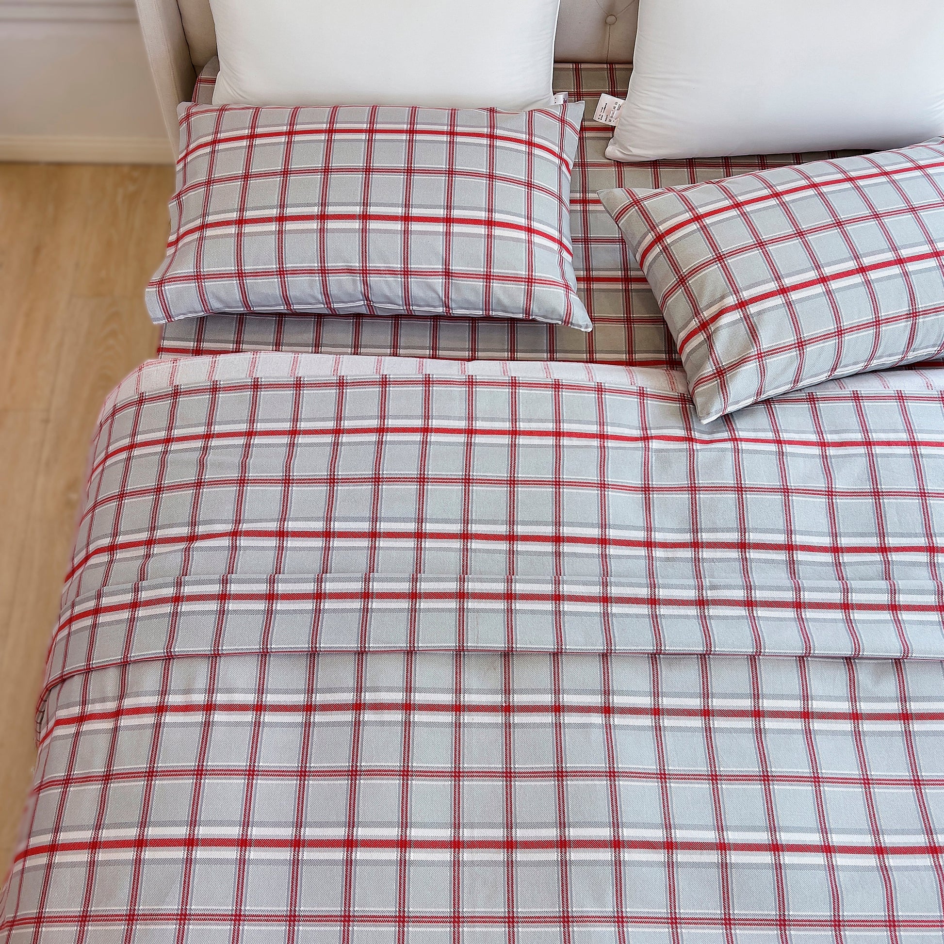 Elegant Comfort Flannel Plaid - 100% Turkish Cotton Flannel, 4-Piece Flannel Sheet Set