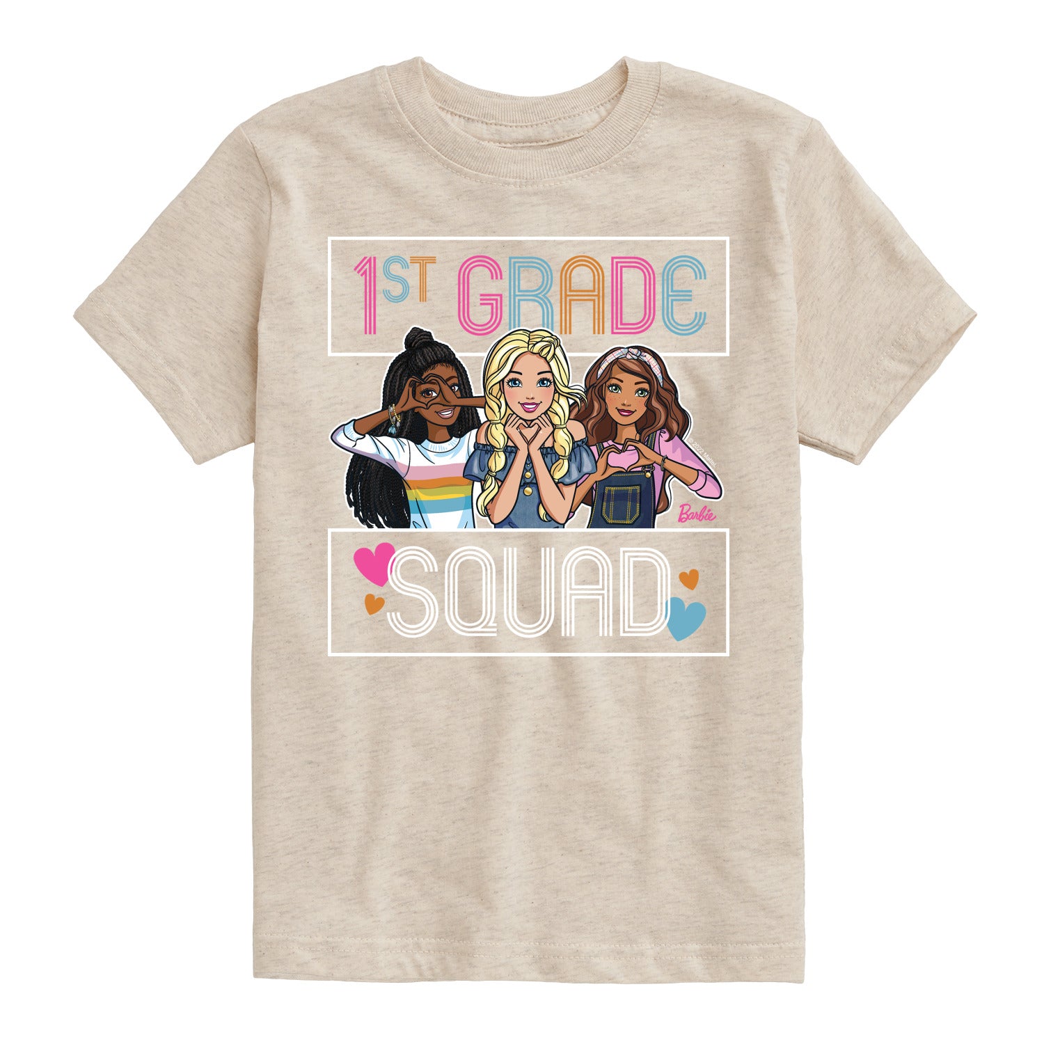 Barbie - Back To School - 1st Grade Squad - Toddler And Youth Short Sleeve Graphic T-Shirt - Step into the glamorous pink world of Barbie with our officially licensed graphic garments for the fashion-forward! Whether you dream of being a fashion designer, a mermaid princess, or a world-traveling explorer, our garments bring Barbie's world to life with vibrant colors and playful prints. Crafted with quality materials and attention to detail, each piece ensures comfort and durability for all-day play. Express your unique sense of style and imagination with our exclusive Barbie graphic apparel!
