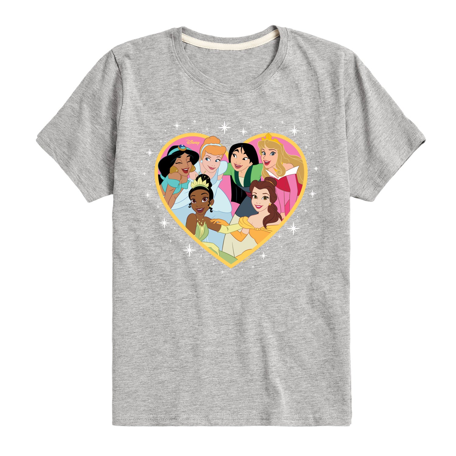 Disney - Princess Group Heart - Youth Boys Short Sleeve Graphic T-Shirt - Add a touch of magic to your wardrobe with this graphic apparel featuring iconic Disney designs. Showcasing beloved characters and classic imagery, each piece combines nostalgic charm with modern style—perfect for Disney fans of all ages. Whether you're headed to the parks or just adding whimsy to your everyday look, these graphics bring the magic to life.