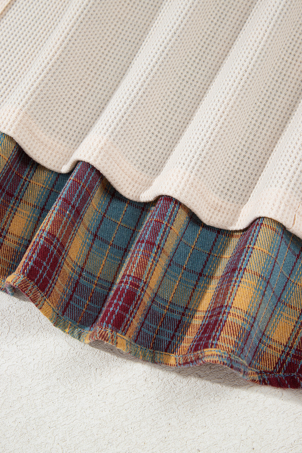 Throw on Mackenzie Plaid Patchwork Half PLUS Pullover when you need an easy outfit that still looks pulled together. This plus waffle top is unique with mixed patterns patchwork. The striped and plaid patterns add fashionable element to this curve top. Half placket and high low design of this relaxed fit pullover. This plus top is perfect for coming fall season.