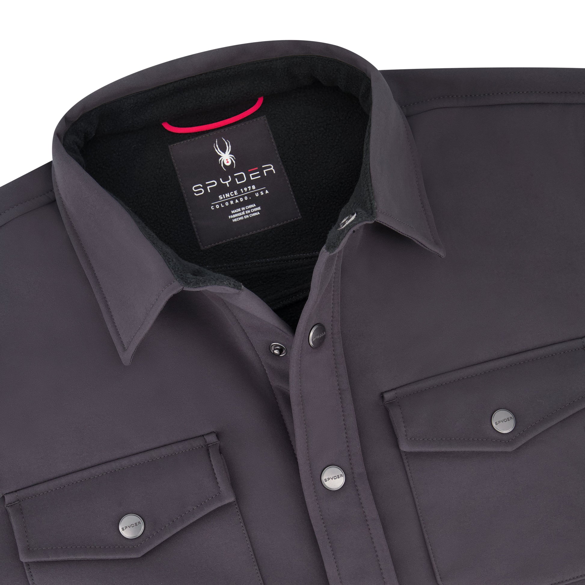 The Bonded Shirt Jacket is constructed with a bonded fabric that provides added structure and warmth for cool conditions. It features a button-front closure, dual chest pockets, adjustable cuffs, and a clean, shirt-style silhouette designed for layering. Finished with subtle Spyder branding and built for everyday wear with a balance of durability and comfort.