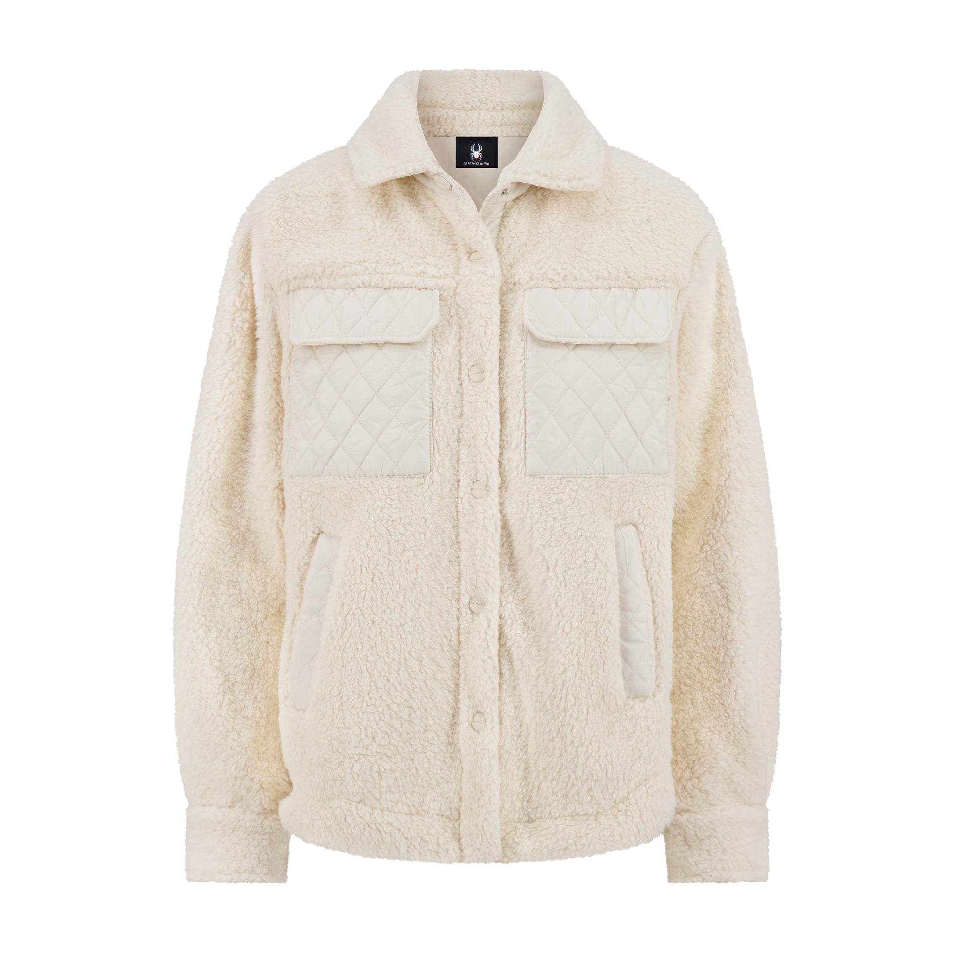 The High Pile Sherpa Shacket is built with a plush high-pile sherpa fabric that delivers warmth and a soft hand feel in cold conditions. It features a snap-front closure, woven quilted chest pockets with hidden snaps, and hand welt pockets for everyday utility. Woven solid details throughout the yoke, collar, placket, and cuffs add structure and durability, while subtle Spyder branding keeps the look clean and versatile.