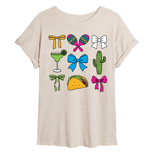 Instant Message - Cinco De Mayo Bows - Juniors Oversized Graphic T-Shirt