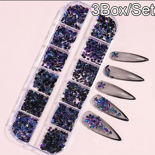 Multi-Shape 3D Flat Bottom Nail Rhinestones - Colorful AB Crystal Gems for DIY Manicure & Crafts